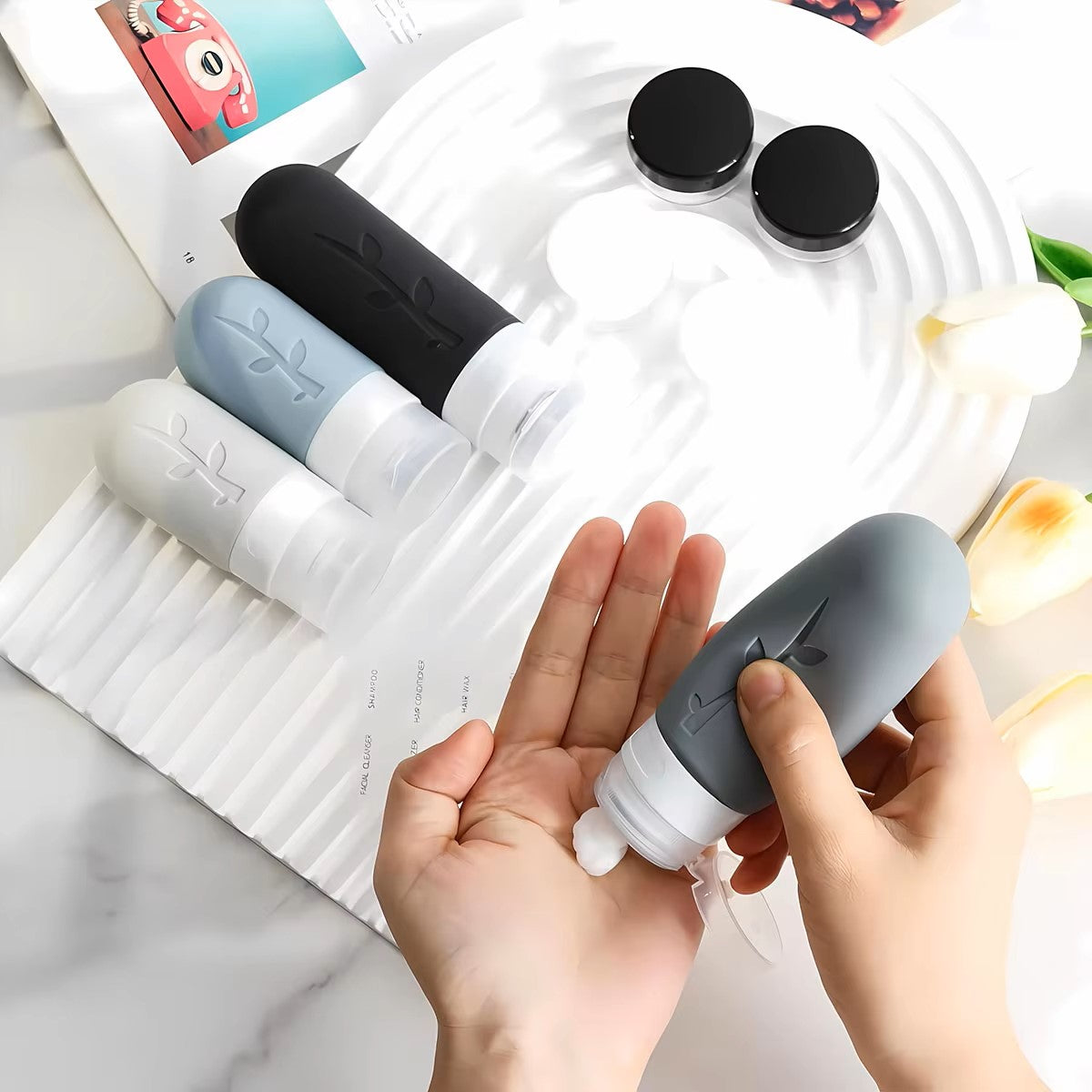 The Ultimate Solution for Organized, Mess-Free Travel Say goodbye to messy luggage and bulky bottles. Our 17-Piece Leakproof Travel Bottle Set is designed to keep your toiletries organized and your clothes dry. Crafted from soft, food-grade silicone, these containers are easy to squeeze and even easier to pack. Whether you're heading out for a weekend getaway or a long-haul flight, this kit ensures you have all your essentials in a TSA-compliant format.