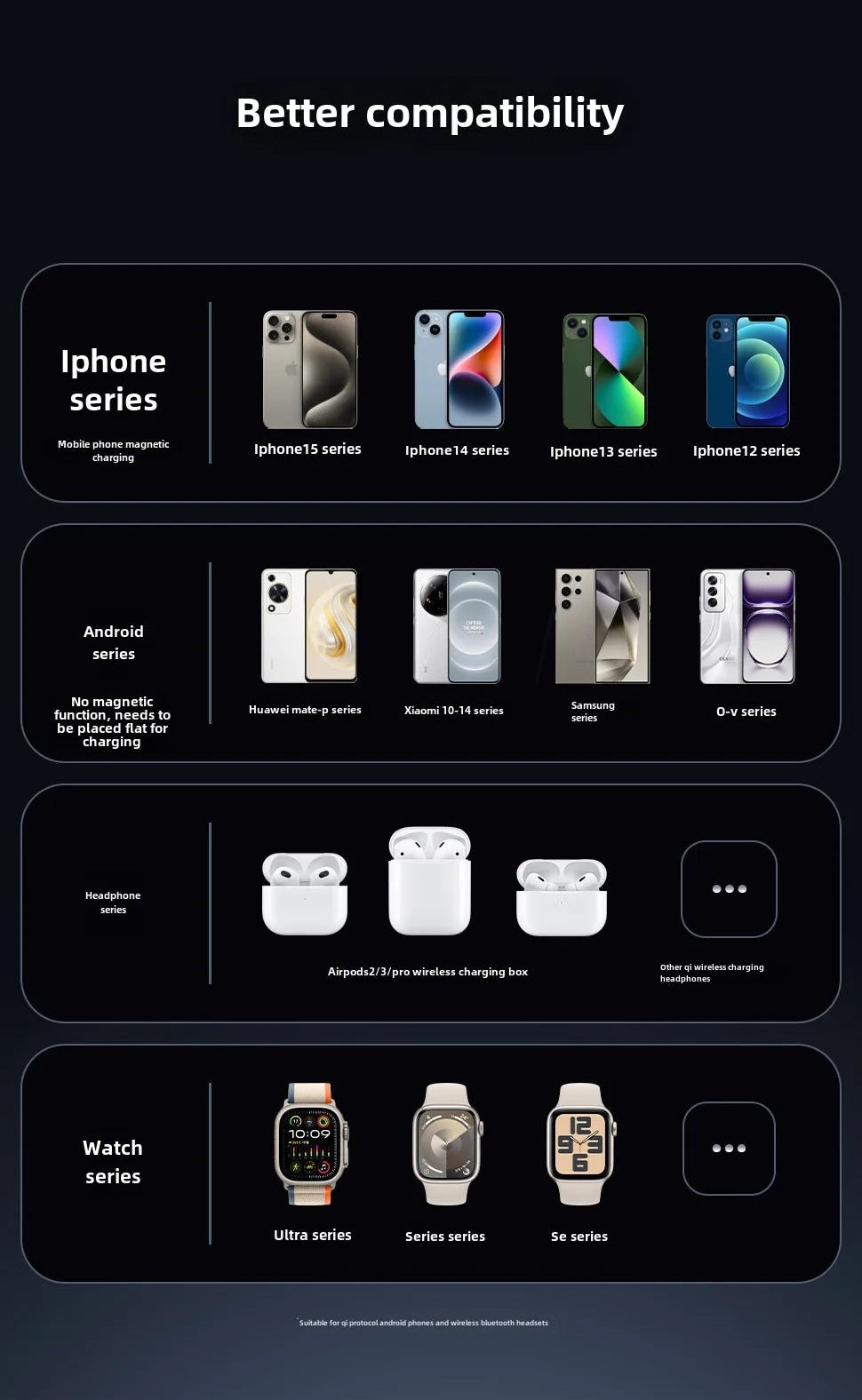 Strong magnetic alignment ensures secure placement, while the compact stand design reduces cable clutter. A practical all-in-one charging solution for daily use at home or work.